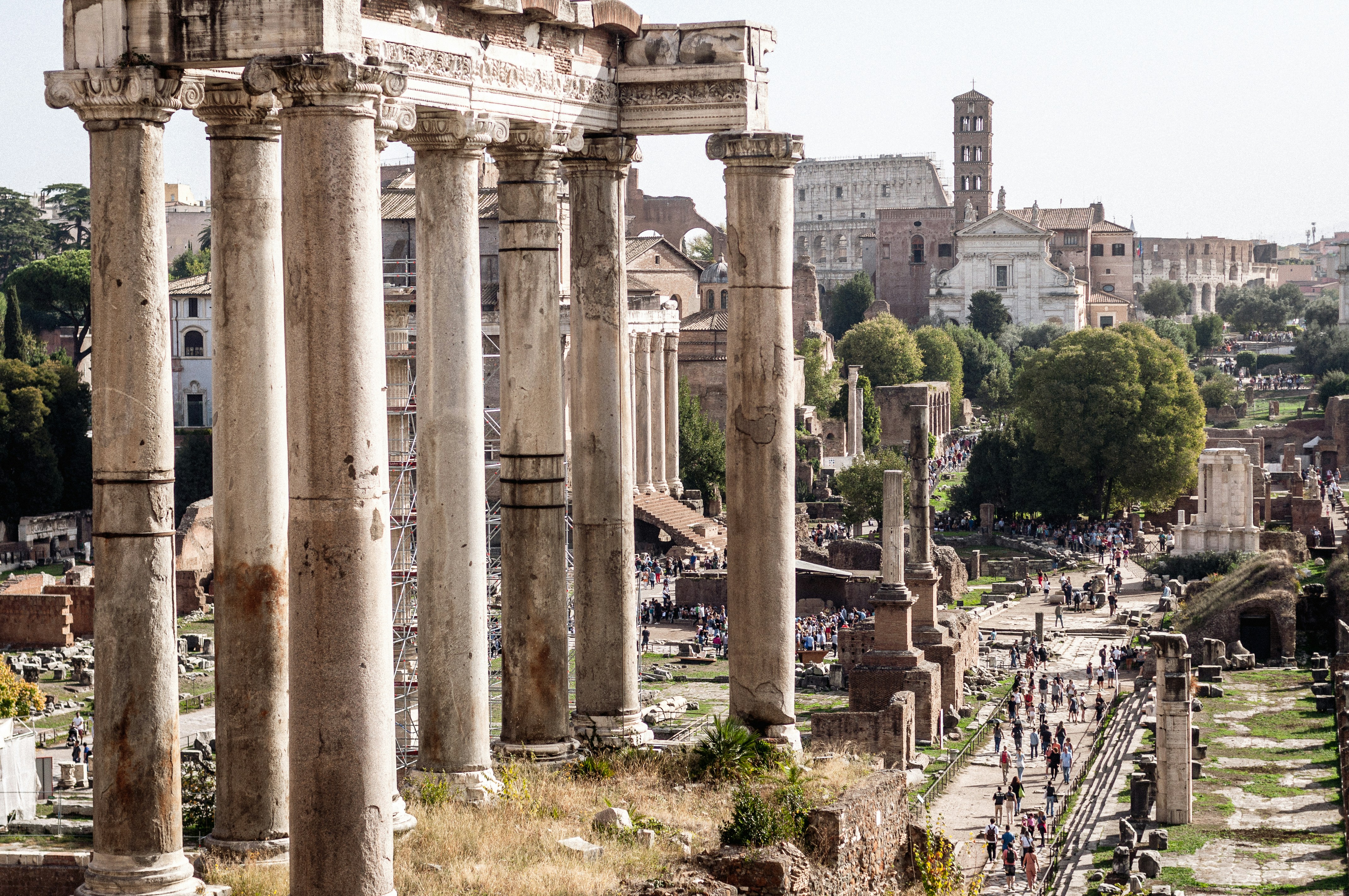 To make your visit to the Roman Forum smooth and insightful, purchase a 'Super Pass' or a combined Colosseum/Forum/Palatine Hill ticket online well in advance. Start your visit early in the morning to avoid the peak crowds and the intense midday sun, especially in summer. Wear comfortable, sturdy walking shoes, as the terrain is uneven and extensive. Bring plenty of water, a hat, and sunscreen; shade is limited. Consider hiring a licensed guide or utilizing an audio guide app for rich historical context – the ruins can be hard to interpret without guidance. There are very few facilities inside the Forum itself, so plan restroom breaks and bring snacks before entering. Allow at least 3-4 hours to properly explore the Forum and Palatine Hill.